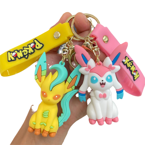 Vente en gros Eevee Pikachu Pokemoned Cartoon Caoutchouc Porte-clés Mignon Anime Cartable Pendentifs et Cadeaux pour Enfants et Fans
